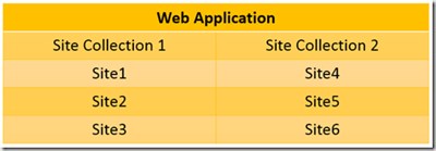 Let's make an example: the portal is based on a web application with two site collections. Each site collection contains three sites. Site collection 1 has these sites (site1, site2, site3) and site collection 2 has these sites (site4, site5, site6).